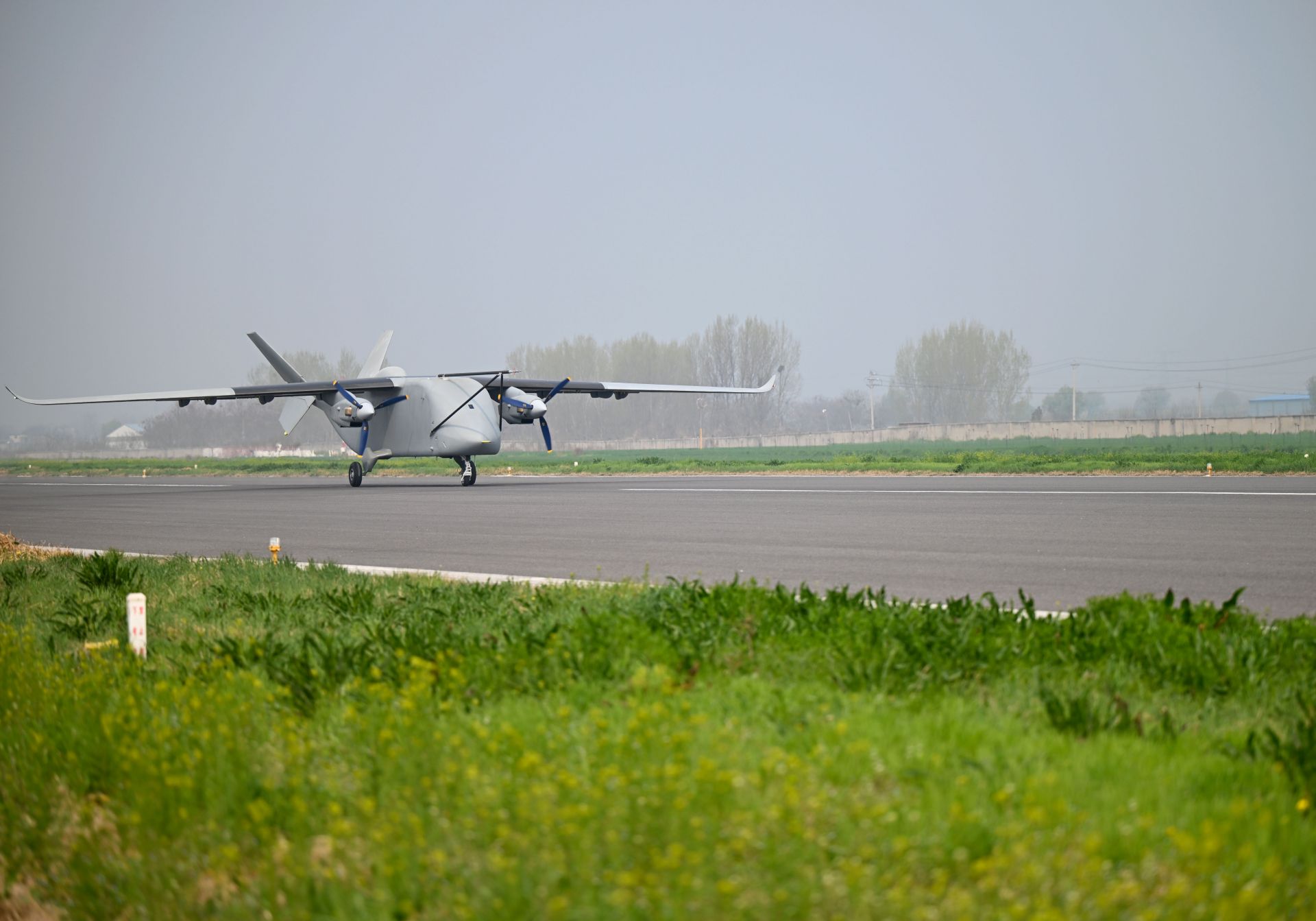 3月31日,运投无人机长鹰-8在河南郑州上街机场试飞后降落。