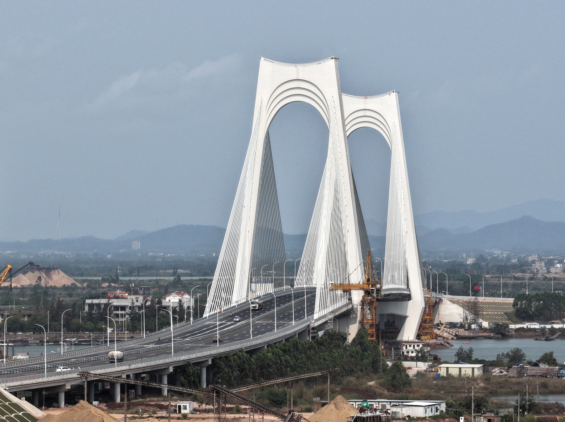 这是3月31日拍摄的建成通车的平陆运河沙井钦江大桥(无人机照片)。 3月31日,地处钦江入海口的平陆运河沙井钦江大桥建成通车。至此,平陆运河规划的27座跨线桥梁中,已有25座桥梁建成通车,全线桥梁工程即将收官。 新华社记者 周华 摄 编辑:李根