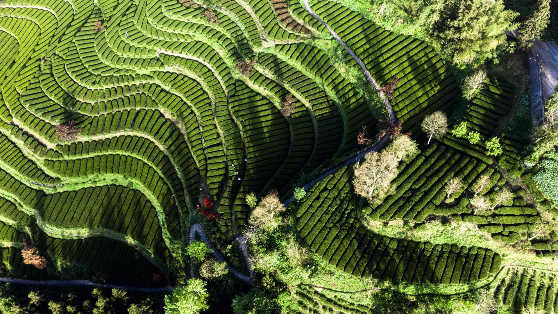 4月18日,在湖北省恩施土家族苗族自治州恩施市屯堡乡花枝山村,茶农在茶园采摘春茶(无人机照片)。 “春山谷雨前,并手摘芳烟。”这是唐代诗人齐己描述的谷雨采茶情景。 谷雨时节,正是采茶好时节,各地茶农忙着采茶制茶,此时的茶叶色泽翠绿,叶质柔软,是春茶中的佳品。 新华社发(文林摄) 编辑:李根